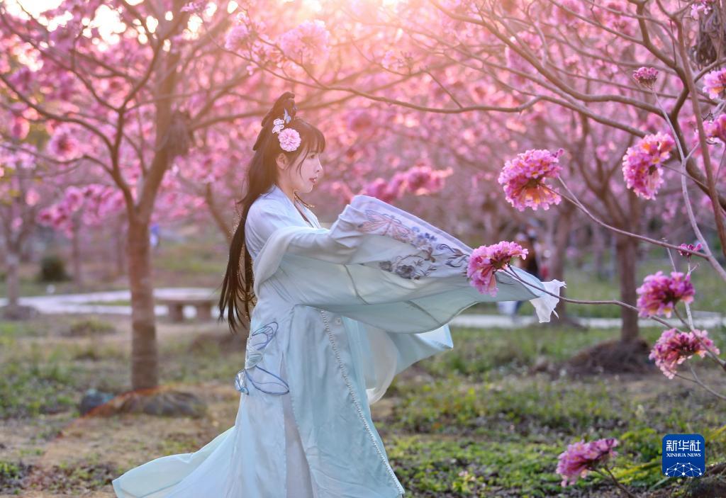 1月29日,一位女士在江門(mén)市新會(huì)區(qū)大澤鎮(zhèn)山頭坪游玩賞花。