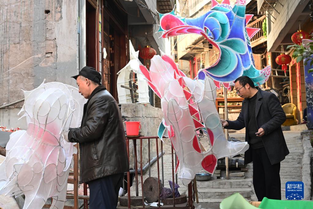 從正月初六開始,貴州省黔東南苗族侗族自治州臺(tái)江縣的民間藝人紛紛用紙、竹木條等材料趕制各式各樣的花燈和龍燈,迎接元宵節(jié)的到來(lái)。