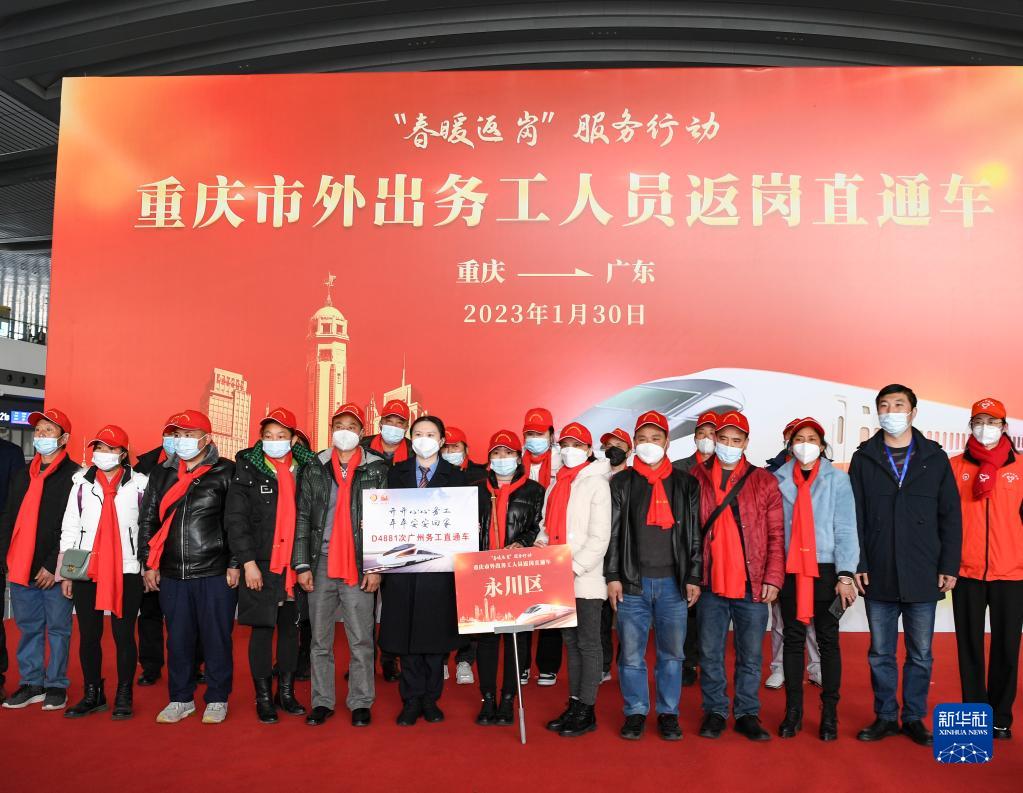 當日,由重慶西開往廣州南的D4881次務(wù)工專列順利開出,來自川渝兩地的約890名務(wù)工人員踏上返崗之路,這是2023年從重慶開行的首趟務(wù)工定制專列。