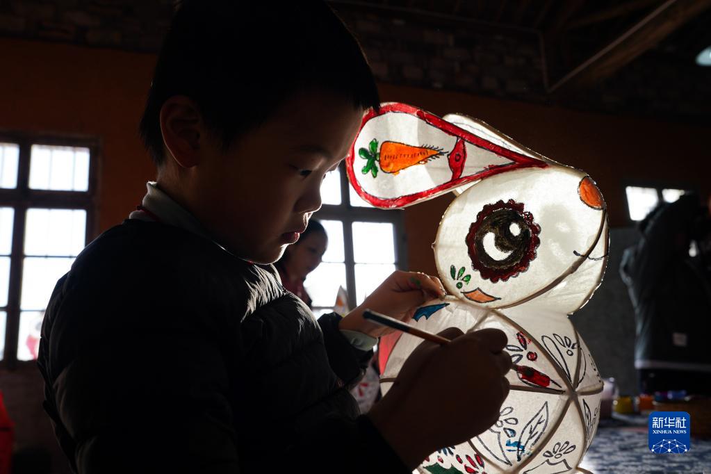 兔年新春,在安徽省黃山市黟縣宏村,當地舉行的花燈研習班邀請游客共同制作兔子形狀花燈。傍晚時分,五顏六色的“兔燈”在古村中點亮,游客在“鬧花燈”中體驗徽州年俗。