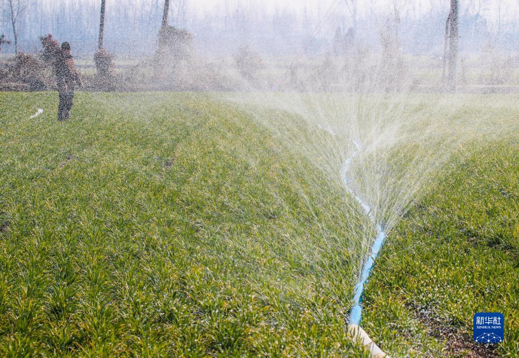 1月30日,在河南省南陽市宛城區(qū)黃臺崗鎮(zhèn)奶母莊村田間,農(nóng)民澆灌冬小麥。