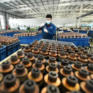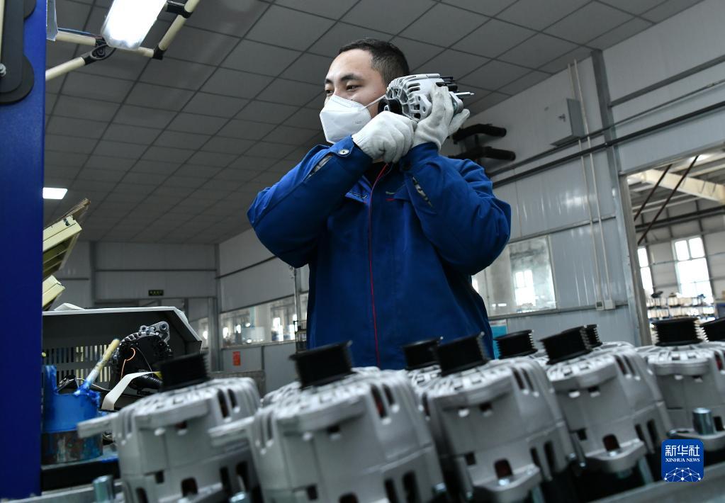 1月30日,工人在河間市一家再制造企業(yè)車(chē)間生產(chǎn)線上檢驗(yàn)汽車(chē)發(fā)電機(jī)。