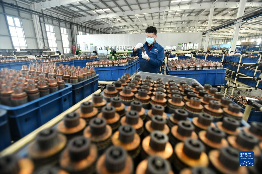1月30日,工人在河間市一家再制造企業(yè)半成品庫(kù)檢查產(chǎn)品質(zhì)量。