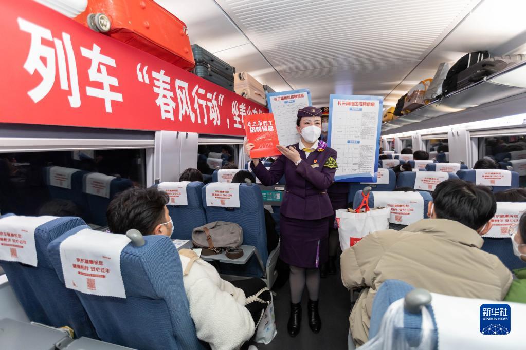 近日,針對長三角地區節后務工流特點,鐵路上海客運段在阜陽開往上海的G7445次列車上開展就業服務“春風行動”,為進城務工旅客提供上海、蘇州、杭州等長三角地區就業信息,發放包括服務、物流、餐飲、家政、制造業等多個行業的300余個崗位招聘信息,幫助他們提前了解用工信息,促成企業和務工人員“雙向奔赴”。