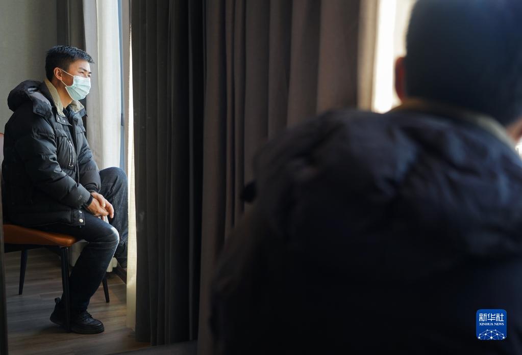 在靖安縣一家酒店,錢芳勇望向窗外,即將見到親生父母,心情有些復(fù)雜(1月30日攝)。