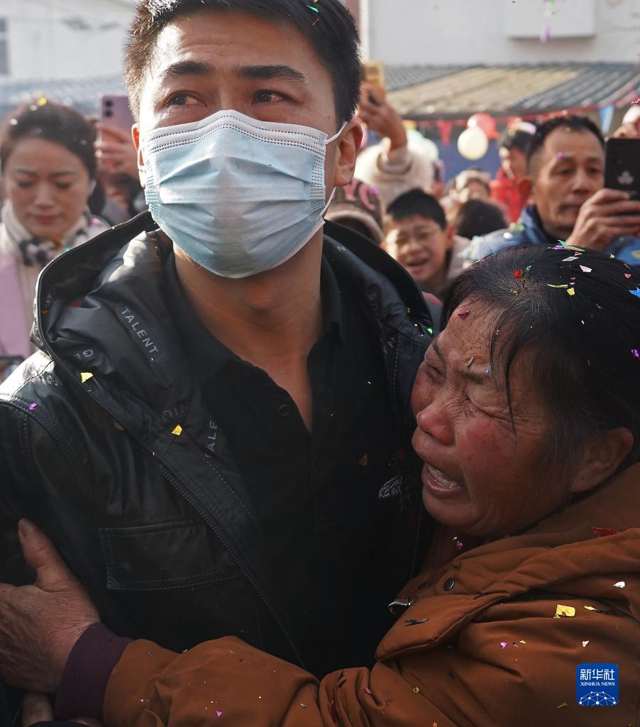 1月30日,江西省靖安縣黃龍村熱鬧非凡,村民們?cè)诼愤吔辜钡氐却赣H余陳妹突然從人群中沖出,緊緊抱住剛下車的兒子喜極而泣,這一刻余陳妹一家足足等待了32年。