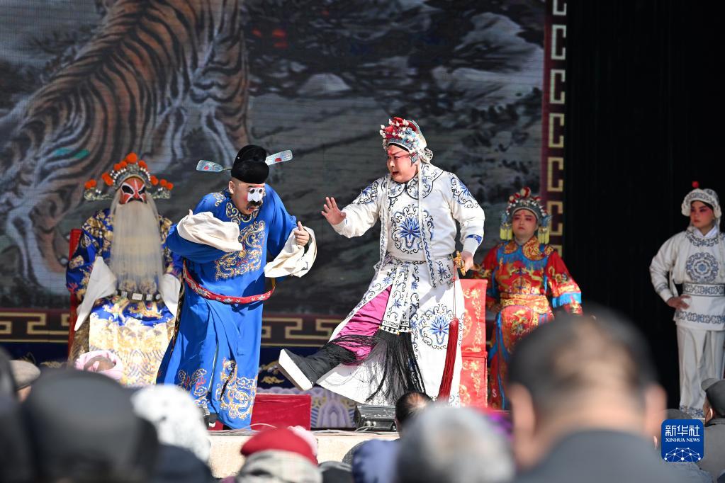 1月30日,太原市晉劇藝術(shù)研究院實(shí)驗(yàn)二團(tuán)演員在山西省太原市清徐縣孟封村演出。