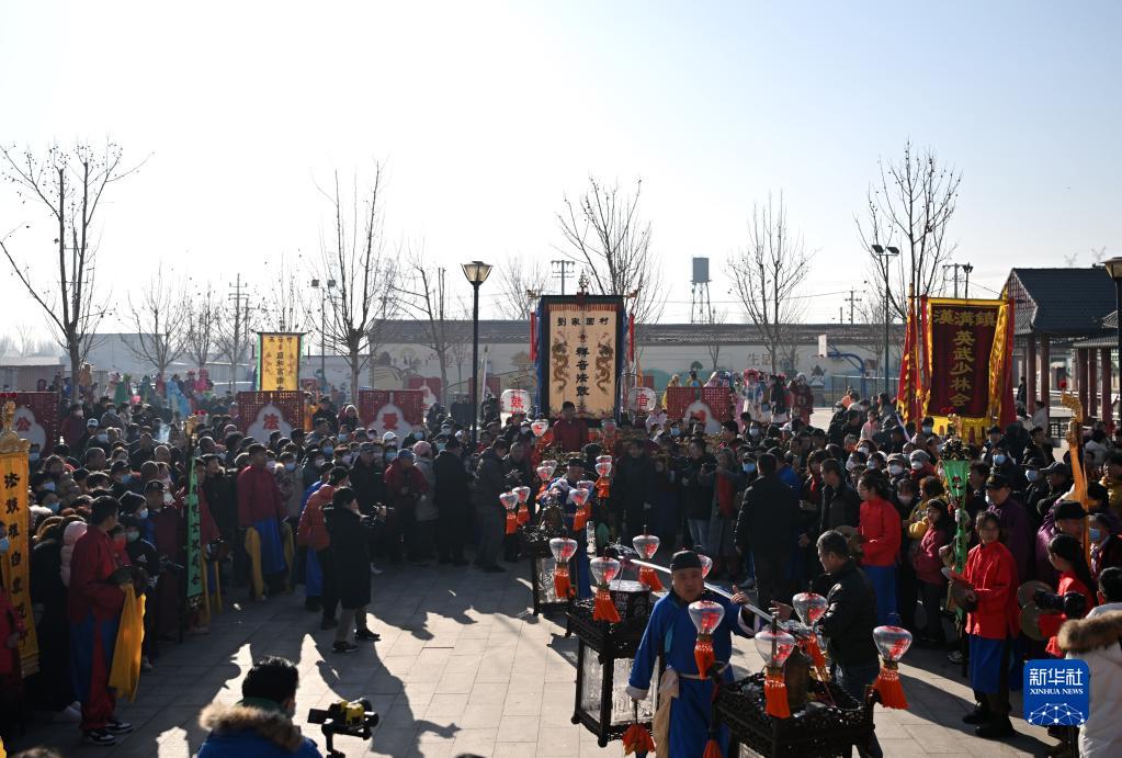 當日,天津市北辰區雙口鎮中河頭村舉辦一場名為“新春非遺大聯歡”的民間花會展演。不少村民紛紛前來,觀看劉園祥音法鼓、王秦莊同議高蹺等,在賞民俗、尋年味中感受非遺魅力。