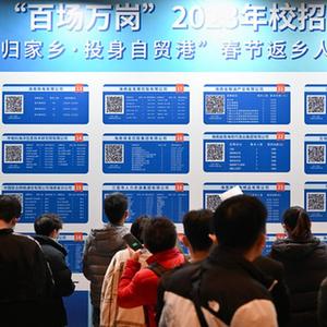 1月31日,求職者在查看招聘信息。當日,中共海南省委、海南省人民政府在海口市舉辦“回歸家鄉·投身自貿港”春節返鄉人才對接會。據了解,本場招聘會有245家用人單位提供了5823個崗位。