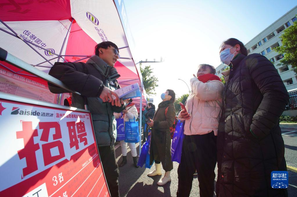 1月31日,求職者在浙江省溫州市海洋經濟發展示范區春季招聘會上了解就業信息。