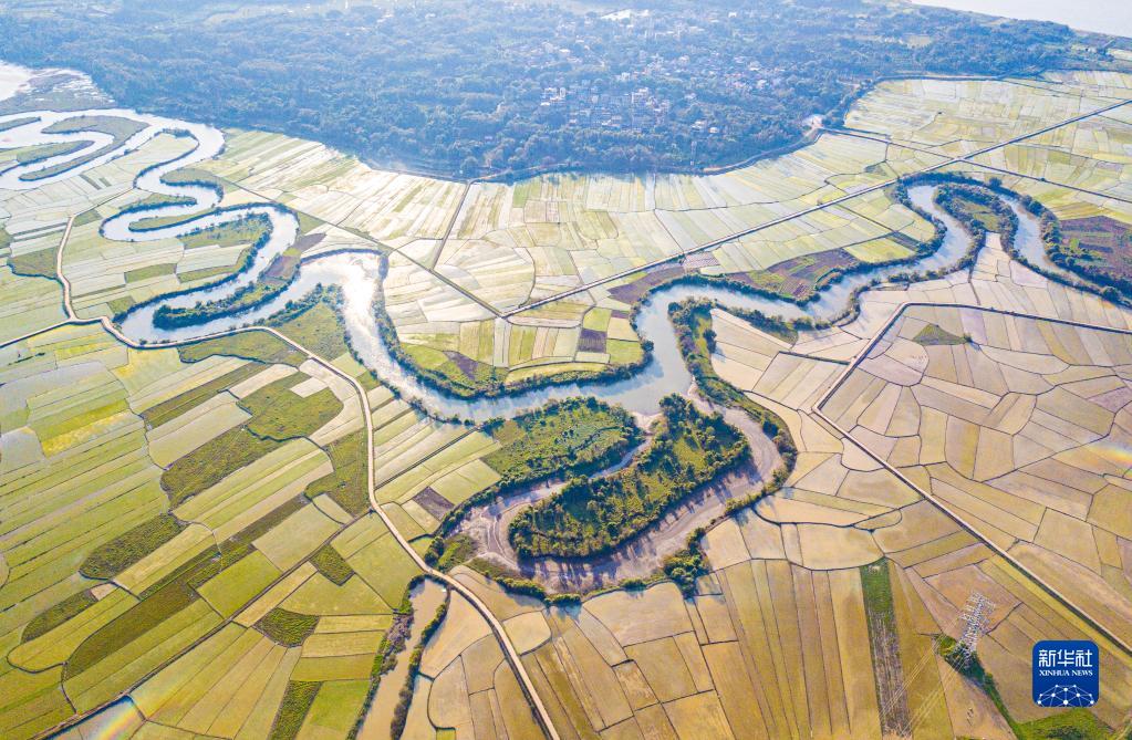 近日,位于海口市瓊山區的海口三十六曲溪省級濕地公園及周邊的稻田春意盎然。農民在稻田里忙著種植早稻,蜿蜒的河道與連片的早稻田交織成景,勾畫出一幅幅充滿生機的美麗圖畫。