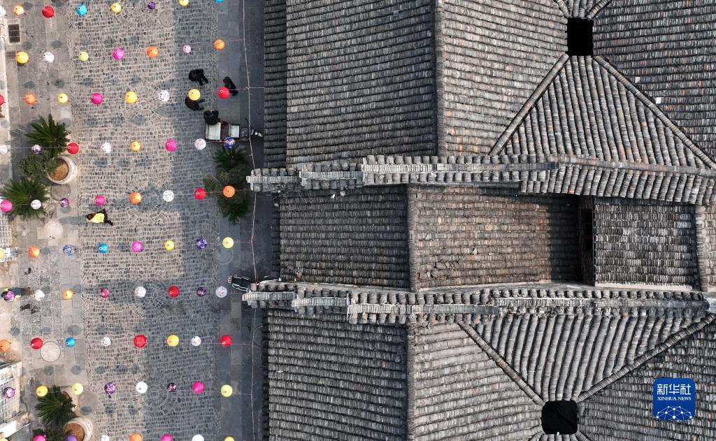 這是2月1日拍攝的舊州古鎮一角(無人機照片)。