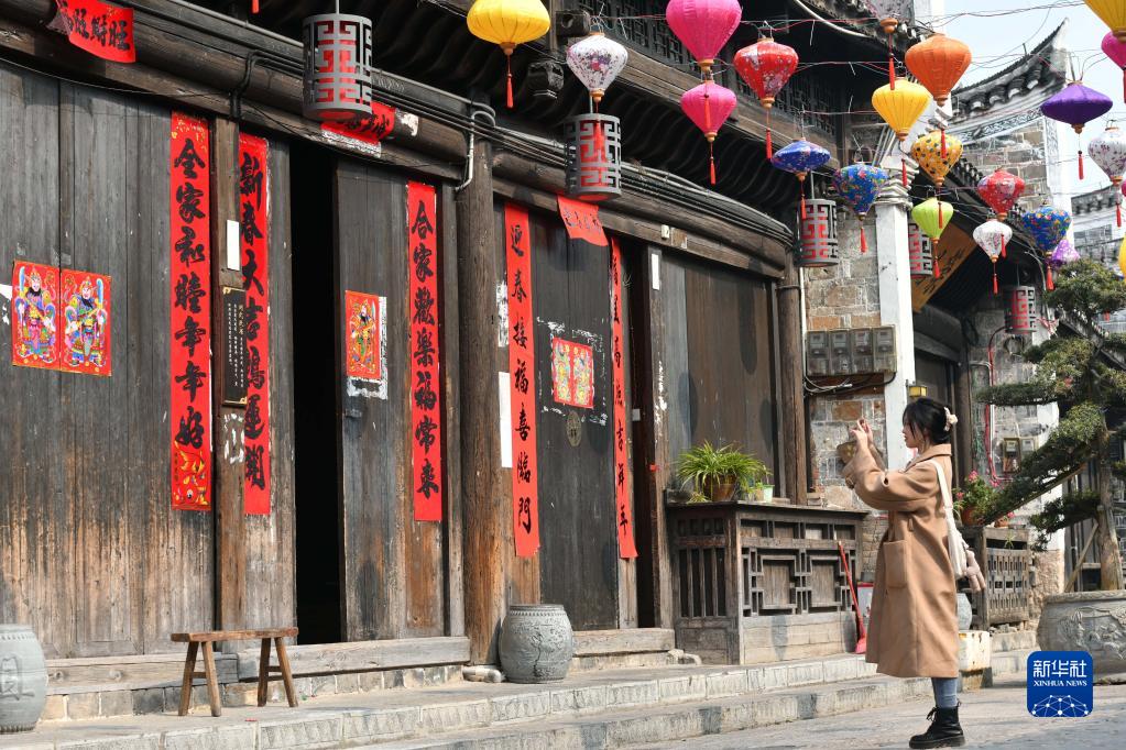 2月1日,游客在舊州古鎮(zhèn)游覽、拍照。