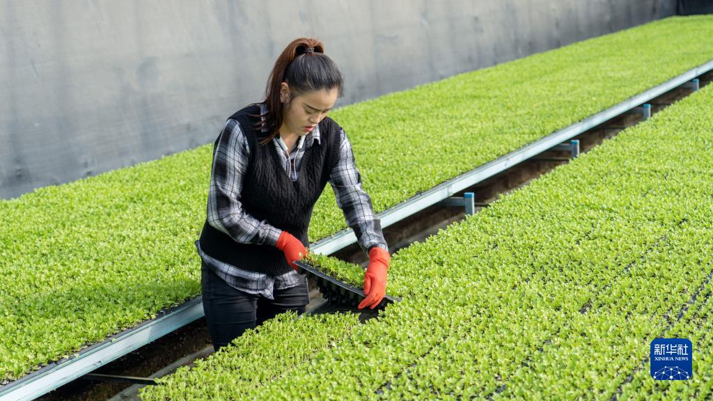 臨近立春,寧夏銀川市賀蘭縣各主要種苗繁育基地的大棚內(nèi)滿眼綠意,工人們忙著為即將到來的春耕培育幼苗。