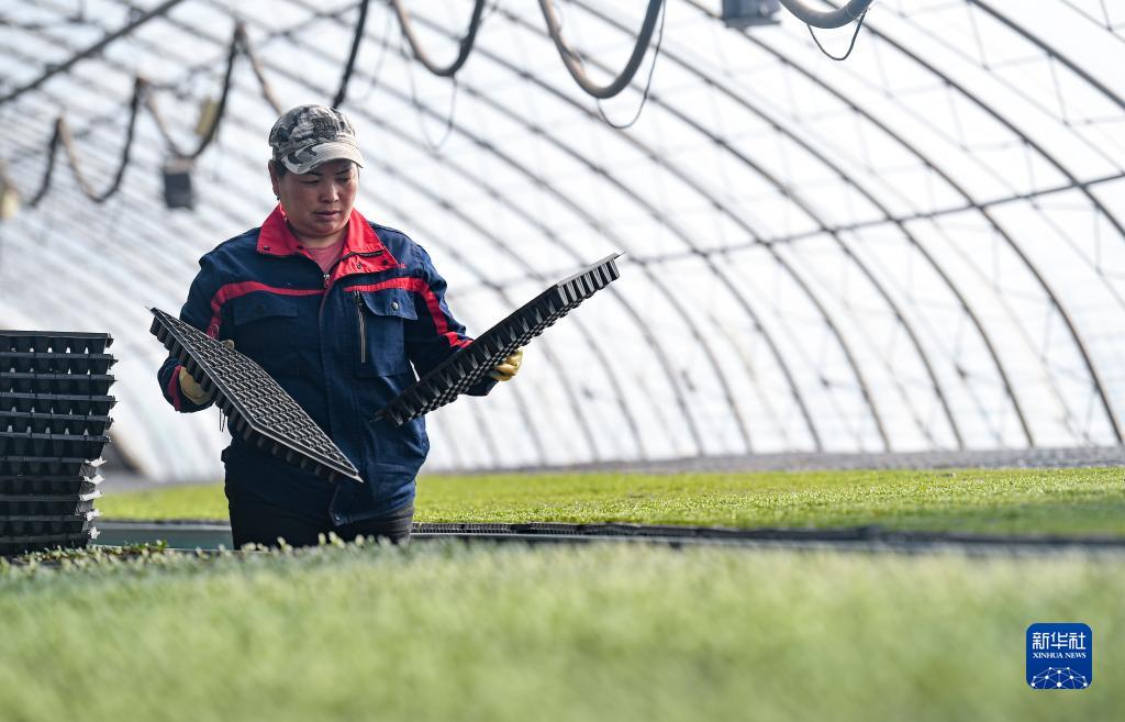 臨近立春,寧夏銀川市賀蘭縣各主要種苗繁育基地的大棚內滿眼綠意,工人們忙著為即將到來的春耕培育幼苗。