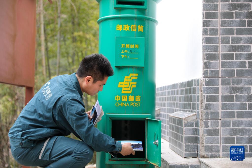 2月1日,謝菲俊取出郵政信筒里游客寄往各地的明信片等。