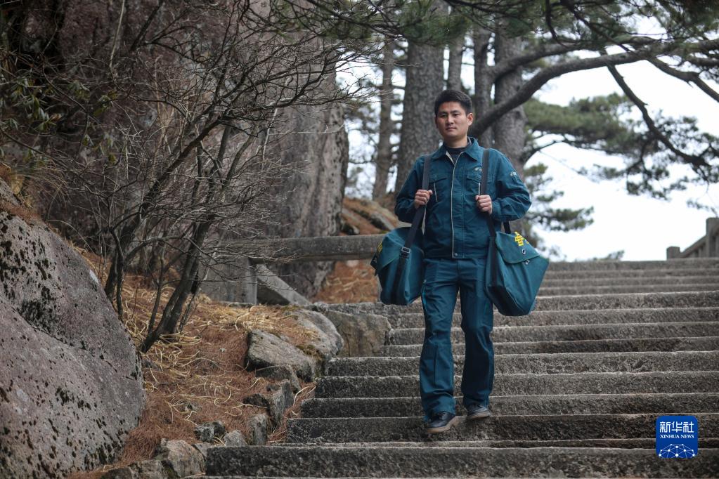 作為安徽黃山風景區內唯一的郵政步班投遞員,“90后”小伙謝菲俊每天要背負幾十斤的郵包在平均海拔1300多米的“云端”徒步12公里,上下臺階約12000級,將各種郵件送達33個投遞點。由于山高路遠,又是安徽省海拔最高的投遞段道,謝菲俊被大家親切地稱為“云端信使”。