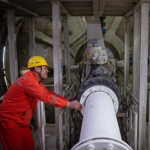 2月1日,中鐵十四局工人在測量護欄尺寸以加工防護網。