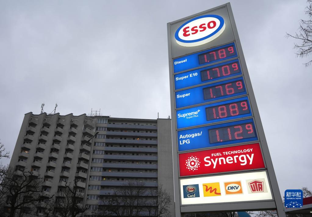 這是2月1日在德國柏林拍攝的一家加油站的油價牌。