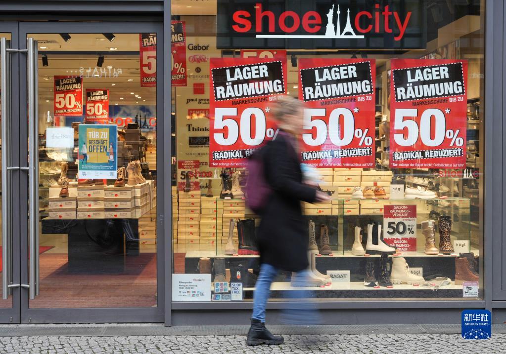 2月1日,一名女子經(jīng)過德國柏林的一家打折店鋪。