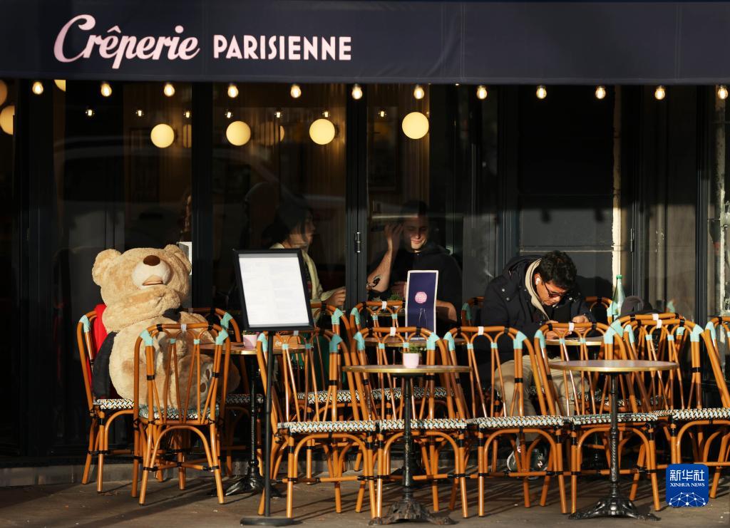 2月1日,一名男子在法國巴黎街頭的咖啡館消費。