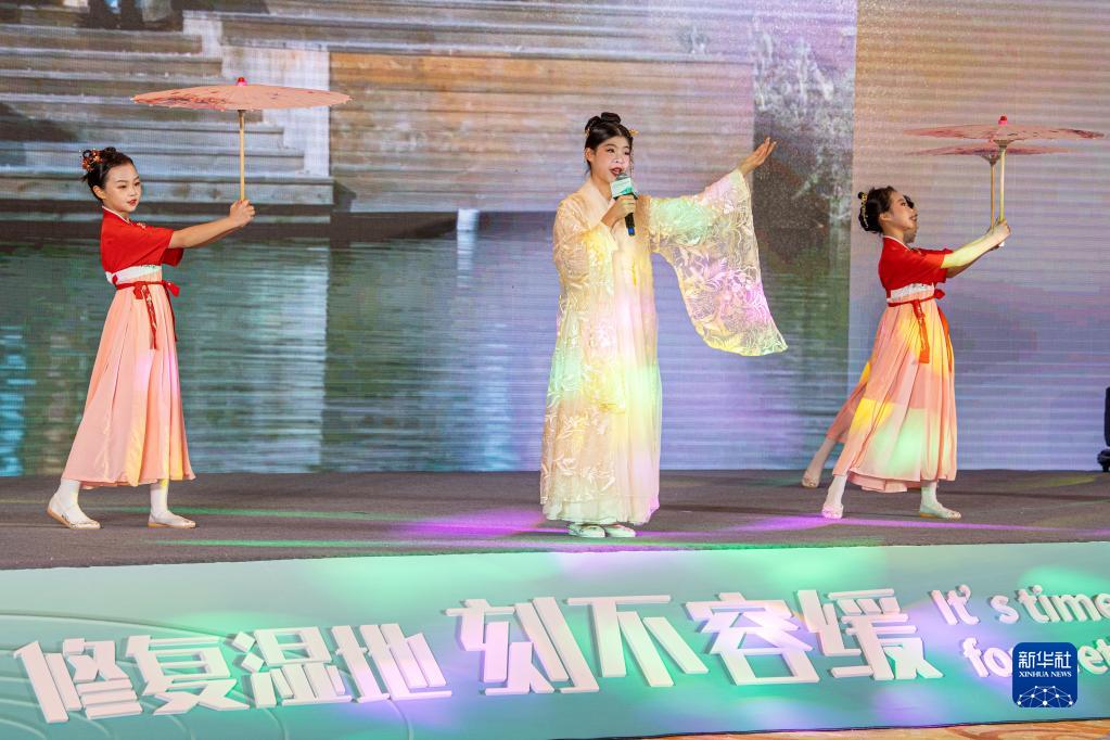 2月2日,青少年代表在2023年世界濕地日中國主場宣傳活動現(xiàn)場表演。