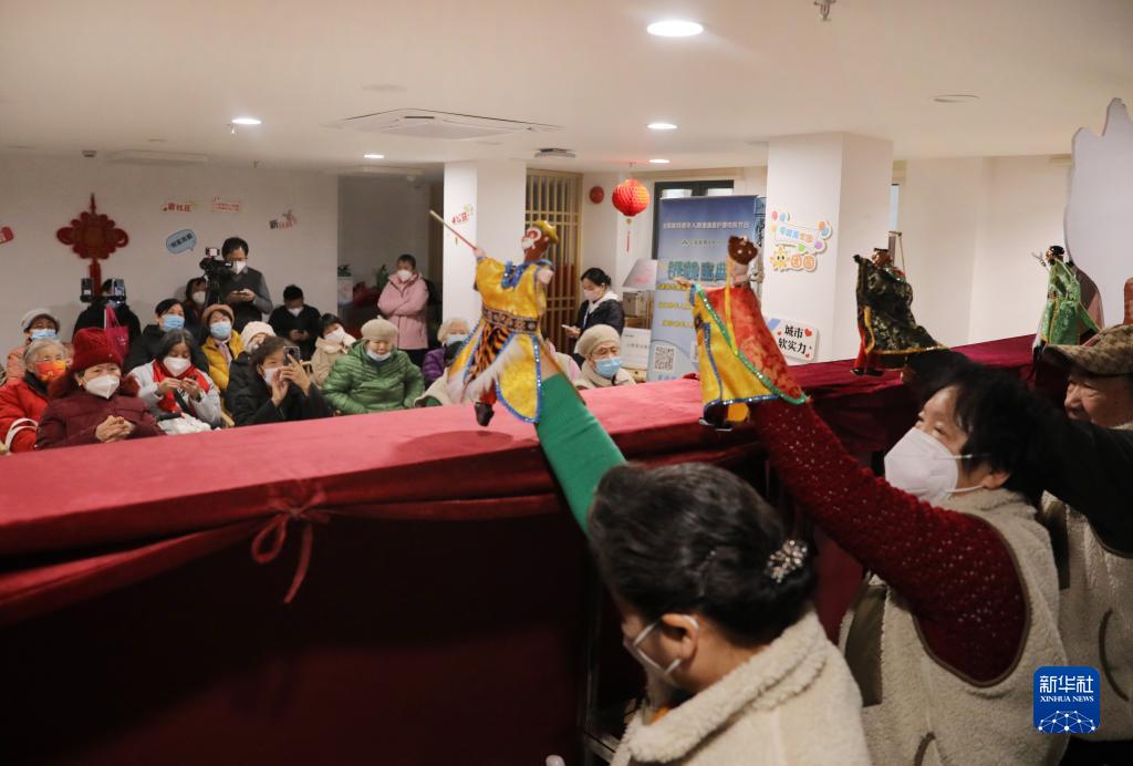 2月2日,社區居民在掌上梨園活動中觀看木偶戲表演。