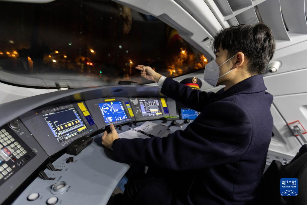 2月1日凌晨4時許,上海機輛段司機陳逸東駕駛DJ7716次高鐵確認(rèn)列車前往檢修路段的起點上海站。