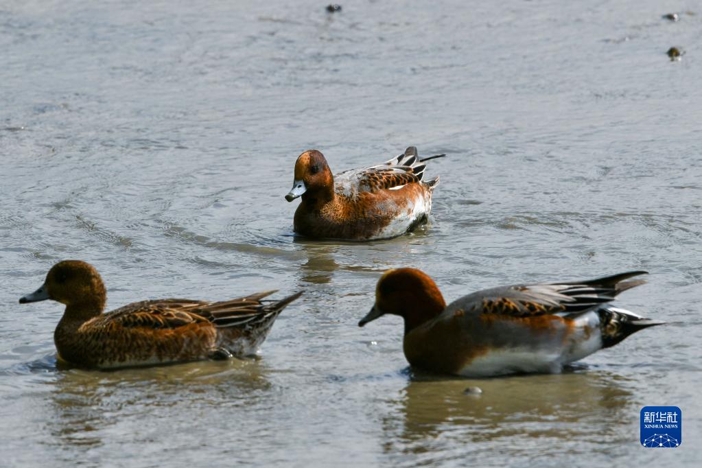 一群赤頸鴨在福田紅樹林濕地里棲息(2022年11月11日攝)。