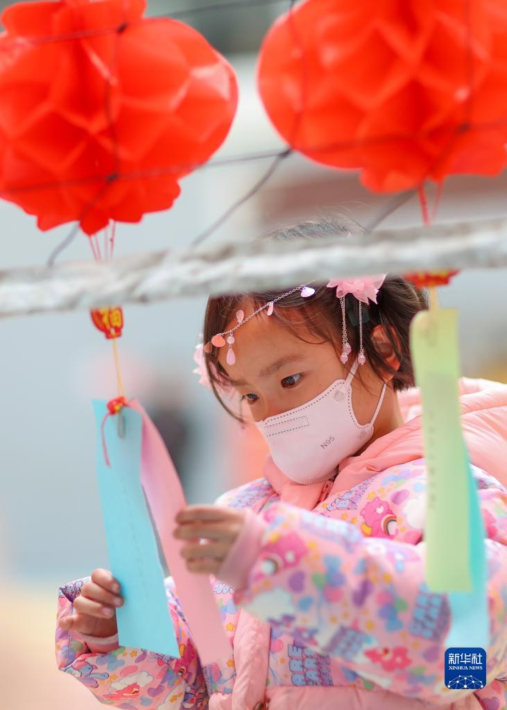 2月2日,貴州省黔東南苗族侗族自治州丹寨縣的小朋友在迎元宵活動中猜燈謎。