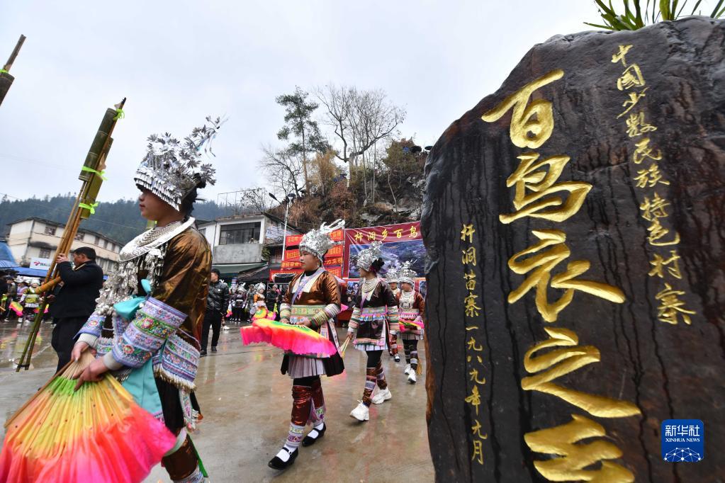 2月2日,融水苗族自治縣桿洞鄉(xiāng)黨鳩村苗族同胞進(jìn)行蘆笙踩堂。
