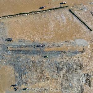 2月2日,福州瑯岐島漁民在翻耕灘涂播種蟶苗(無人機照片)。