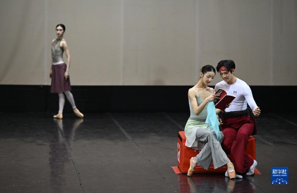 2月2日,在芭蕾舞劇《紅樓夢》中飾演賈寶玉的演員黎文韜(右)、飾演林黛玉的演員邱蕓庭在排練。