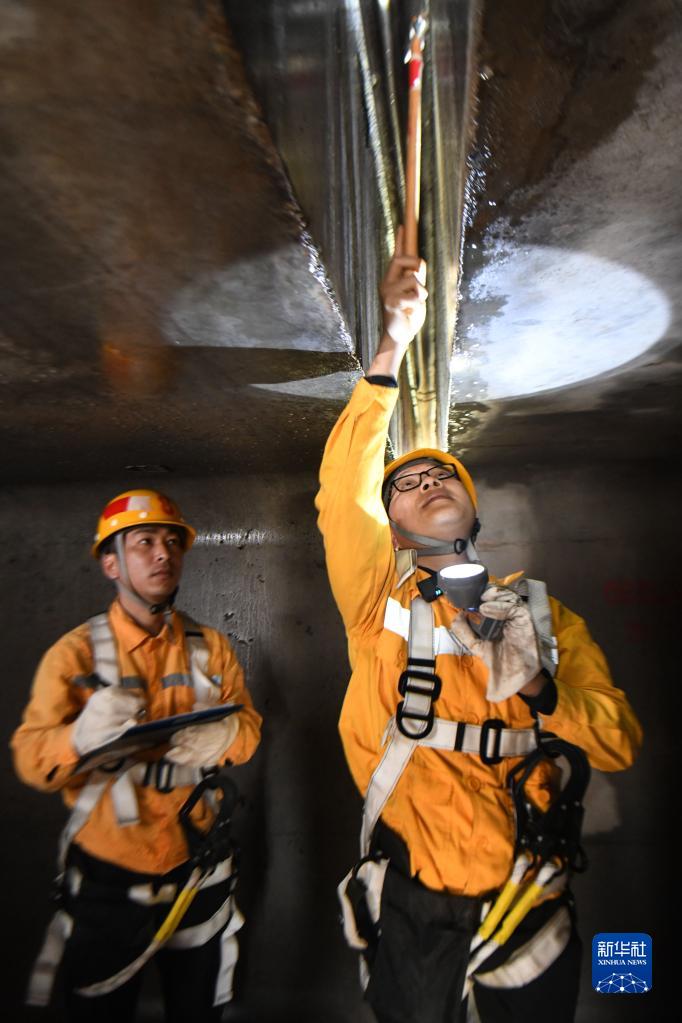2月2日,橋梁工在檢查橡膠止水帶是否破損。