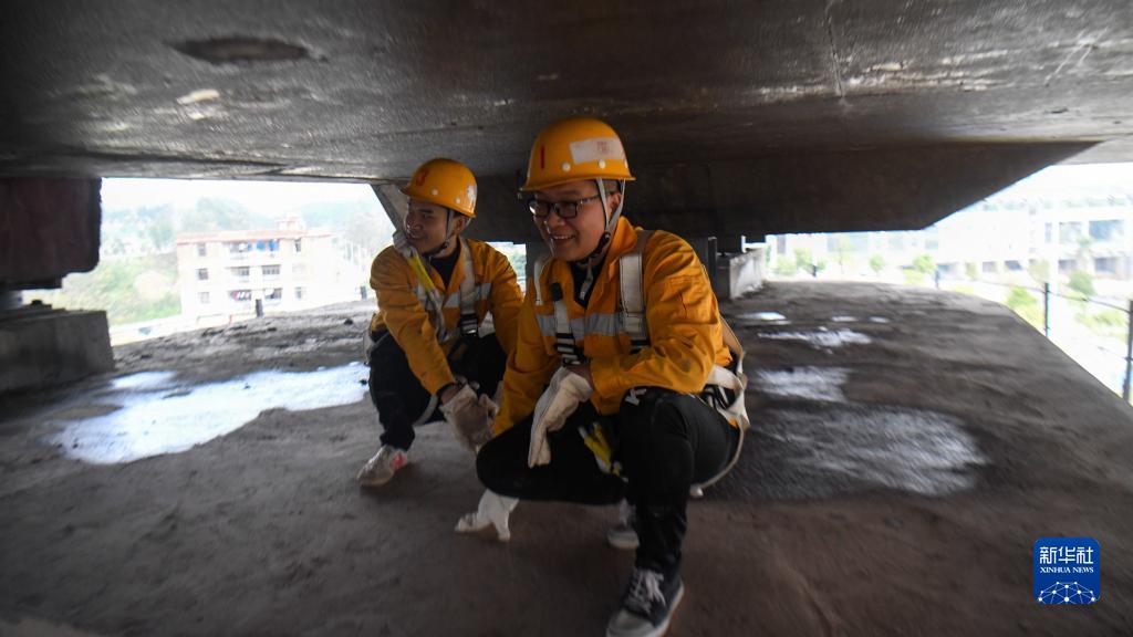 春運期間,為防止列車通過橋梁時的振動對箱梁產生影響,廣西沿海鐵路公司的橋梁工們在箱梁內頻繁穿行,在陰暗、潮濕、火車轟鳴的環境下,緊固螺栓、查找斷裂、彌補缺失,“叩診”“橋肚”確保行車安全。