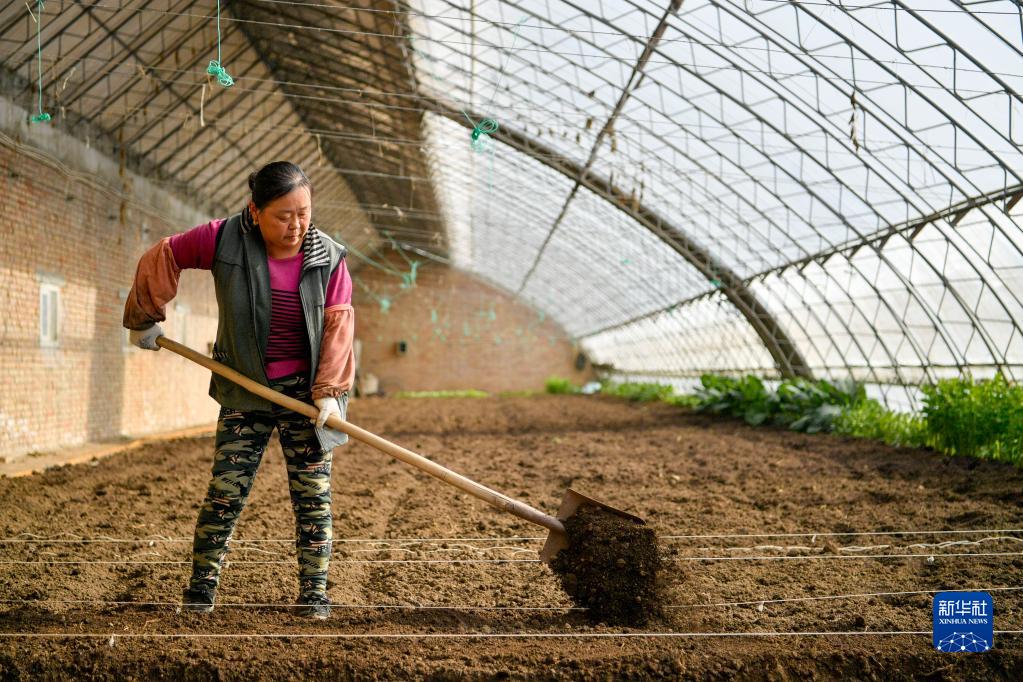 2月2日,工人在天津市農業科學院創新基地平整土地,為后續試驗種移栽做準備。