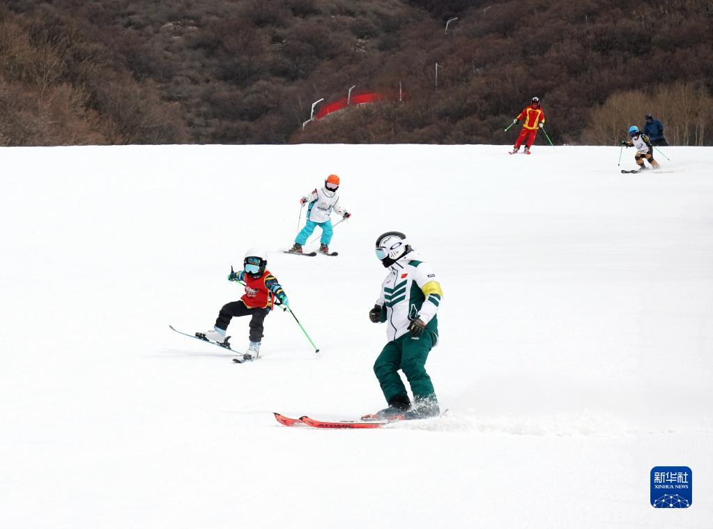 游客在北京延慶區國家高山滑雪中心滑雪(2月2日攝)。