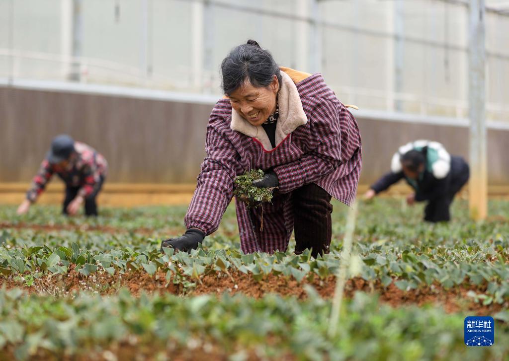2月3日,工人在貴州玉屏侗族自治縣油茶基地的育苗中心勞作。