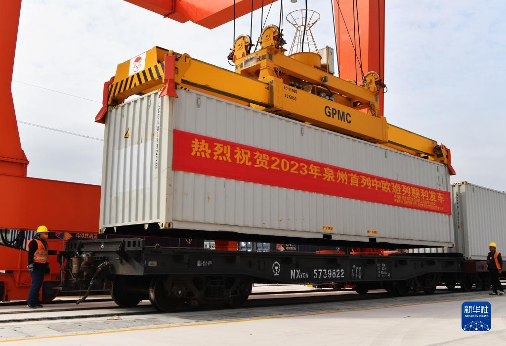 當日,滿載著55個集裝箱的中歐班列,從位于福建泉州惠安縣的興泉鐵路黃塘站駛出。這是泉州今年開出的首趟中歐班列,也是興泉鐵路開通后的首趟泉州中歐班列。據了解,此次班列裝載產品主要來自泉州進出口企業,貨重601.4噸,貨值約262.5萬美元。