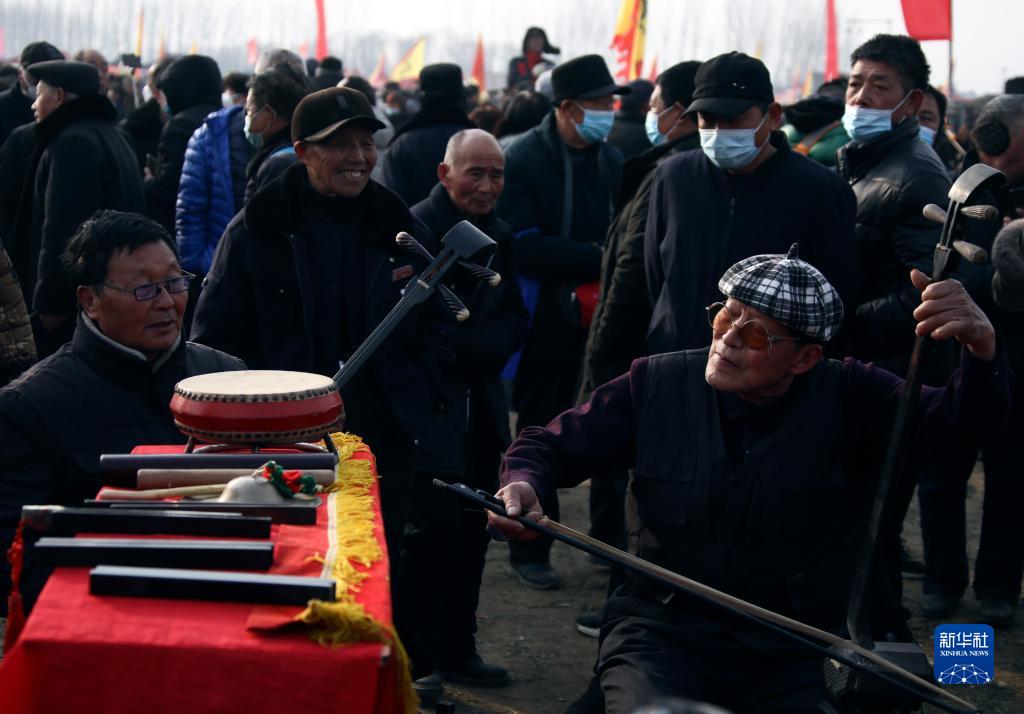當(dāng)日是正月十三,時(shí)隔三年,河南省寶豐縣馬街書(shū)會(huì)線下“重啟”。來(lái)自全國(guó)各地的說(shuō)書(shū)藝人負(fù)鼓攜琴,聚集于此。在麥田中,他們以天作幕,以地為臺(tái),說(shuō)書(shū)會(huì)友,彈唱獻(xiàn)藝。