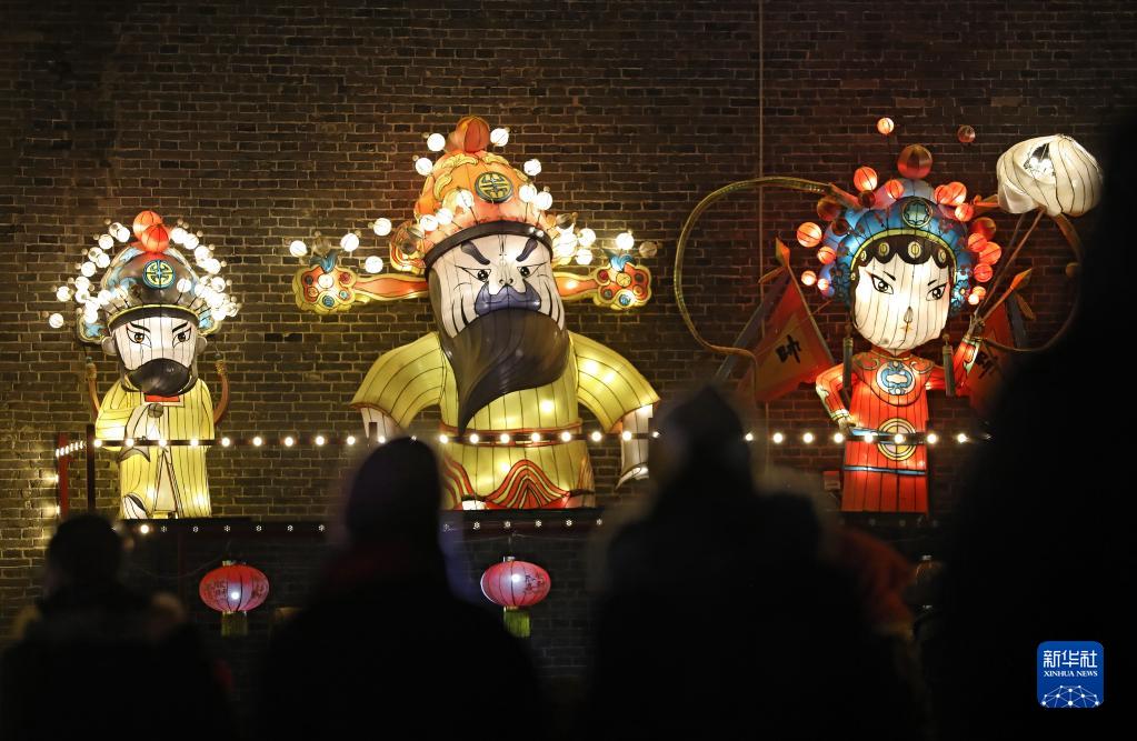 這是營口遼河老街上的京劇人偶花燈(2月3日攝)。