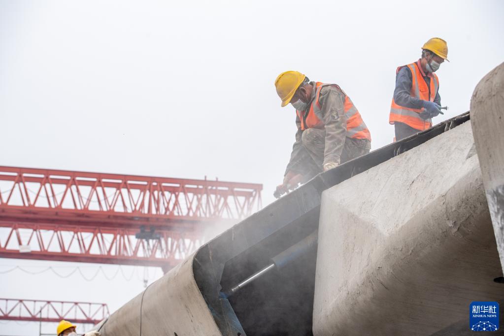 當天,在由中鐵十一局集團承建的渝昆高鐵川渝段站前一標建設施工現場,830噸大型箱梁在鴨子堡特大橋成功架設,標志著渝昆高鐵重慶段實現節后全面復工復產。
