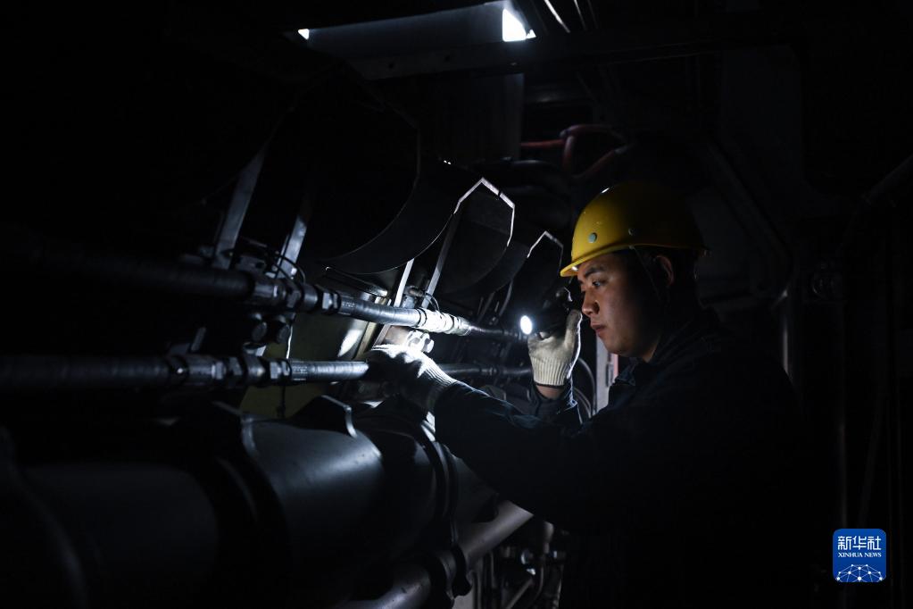 2月4日,在格爾木機務段檢修車間,馬國仁在檢修機車。