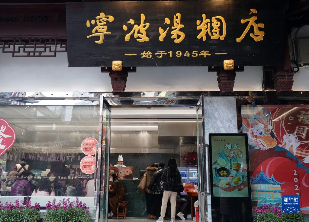 2月3日,人們在豫園老字號“寧波湯團店”吃湯圓。