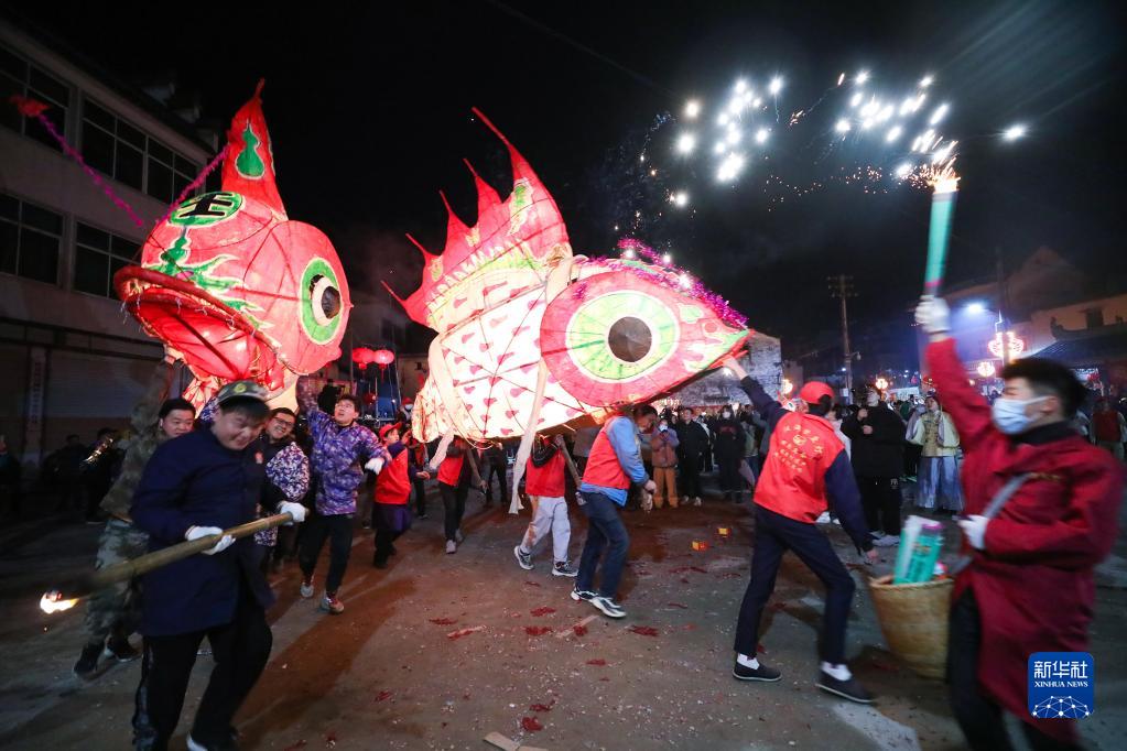 2月3日,安徽省黃山市歙縣溪頭鎮汪滿田村上演一年一度的嬉魚燈民俗。