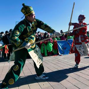 元宵節(jié)將至,在河北省豐寧滿族自治縣黃旗鎮(zhèn)黃旗東村,民間藝人在村內(nèi)文化廣場表演有著悠久歷史的省級非遺項目“黃旗武會”,吸引游客和周邊群眾前來觀賞,喜迎元宵節(jié)到來。“黃旗武會”是當(dāng)?shù)匾环N獨具特色的民間藝術(shù)表演形式,表演以傳統(tǒng)武術(shù)為基礎(chǔ),以鑼鼓伴奏,頗具觀賞性。