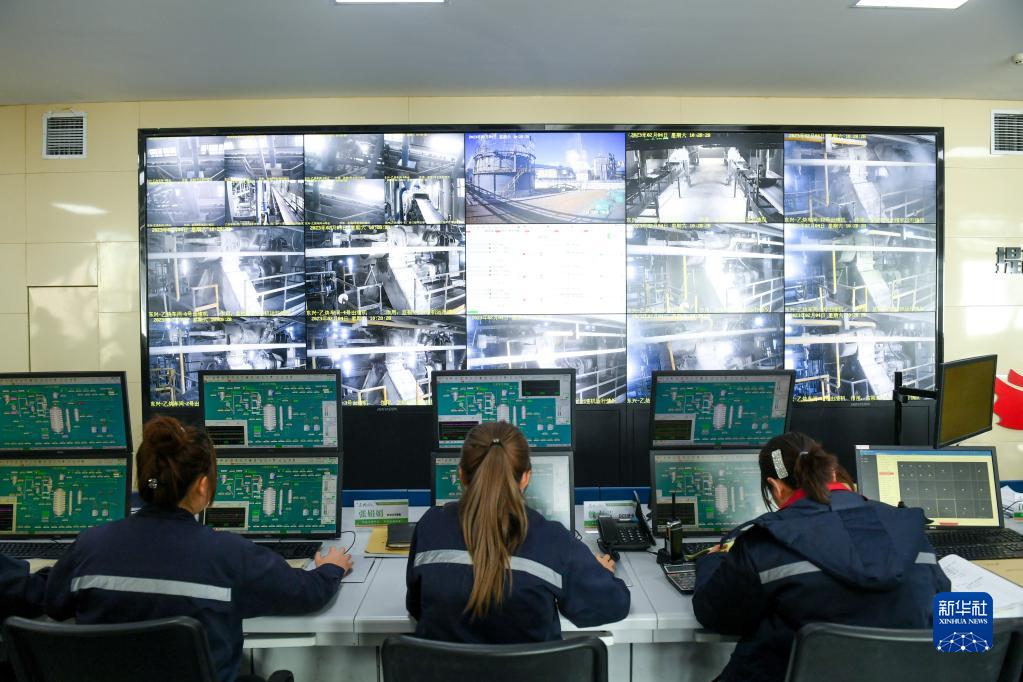 2月4日,在卓資縣一家化工企業集控中心,工作人員監測設備運行情況。