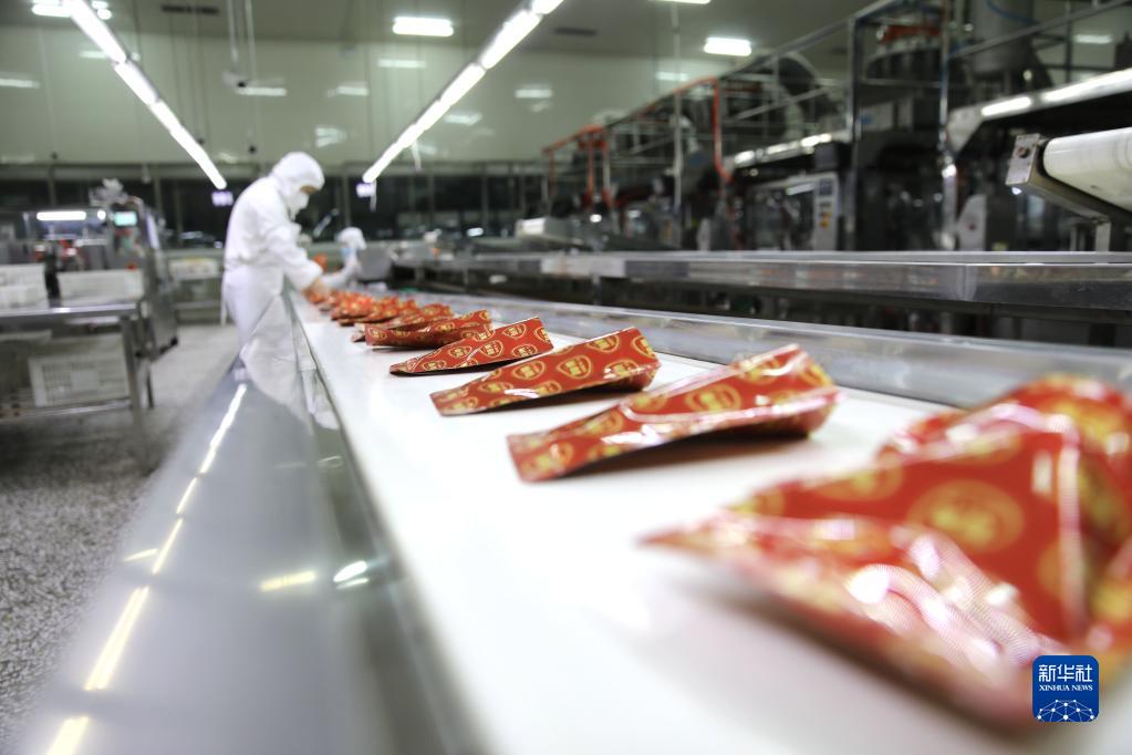 2月4日,在寬城縣一家板栗深加工企業,工人在板栗仁包裝生產線上忙碌。