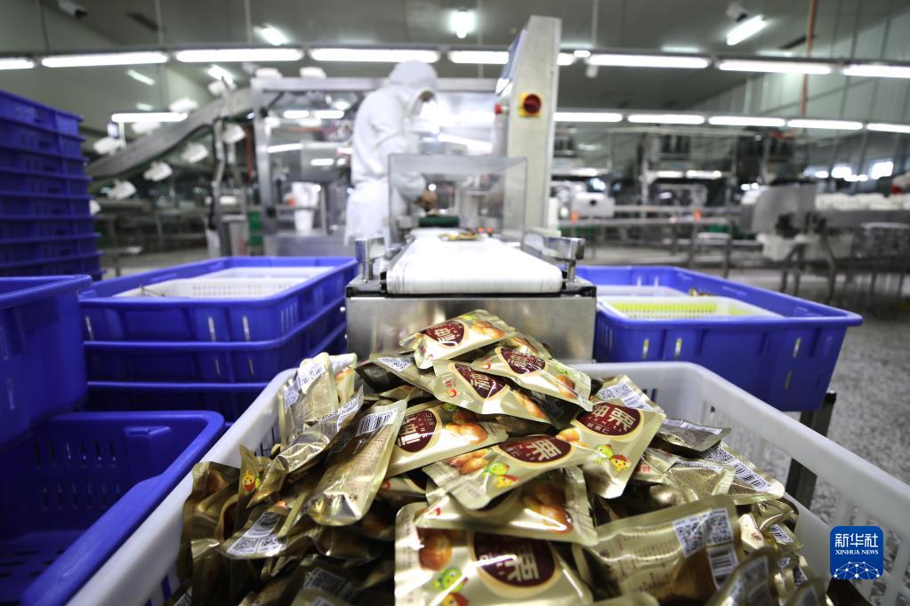 2月4日,在寬城縣一家板栗深加工企業,工人在板栗仁包裝生產線上忙碌。