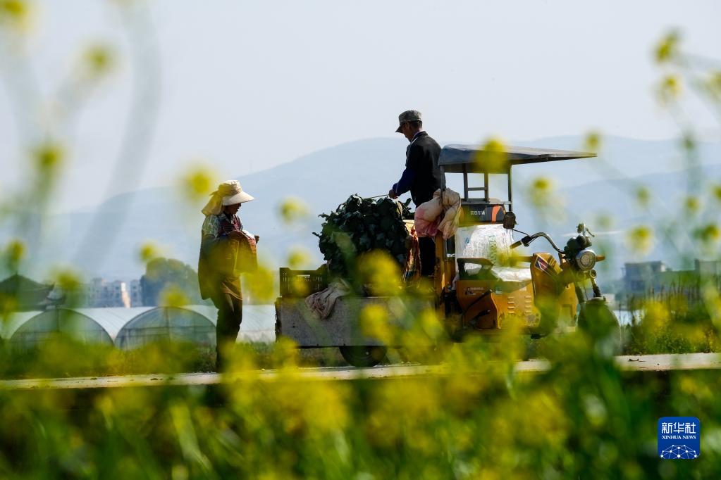 2月4日,在云南省個舊市大屯街道新瓦房村,農民在田里勞作。